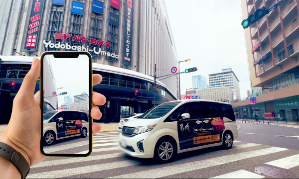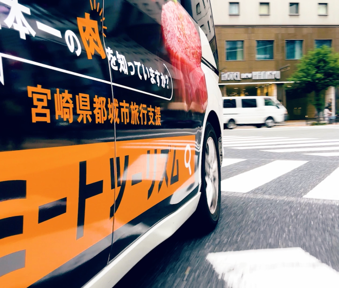走行する車両に広告を掲示することで、高い視認性と