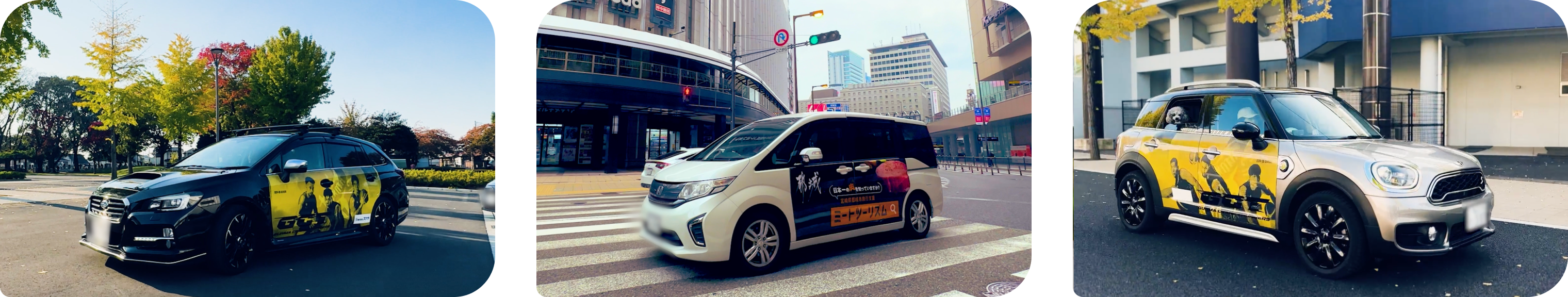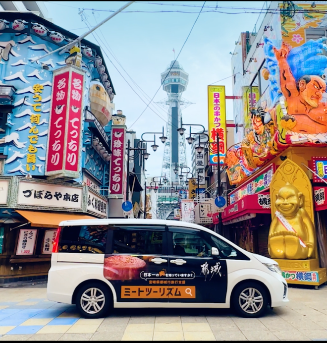 街を移動する乗用車・社用車をラッピングして、